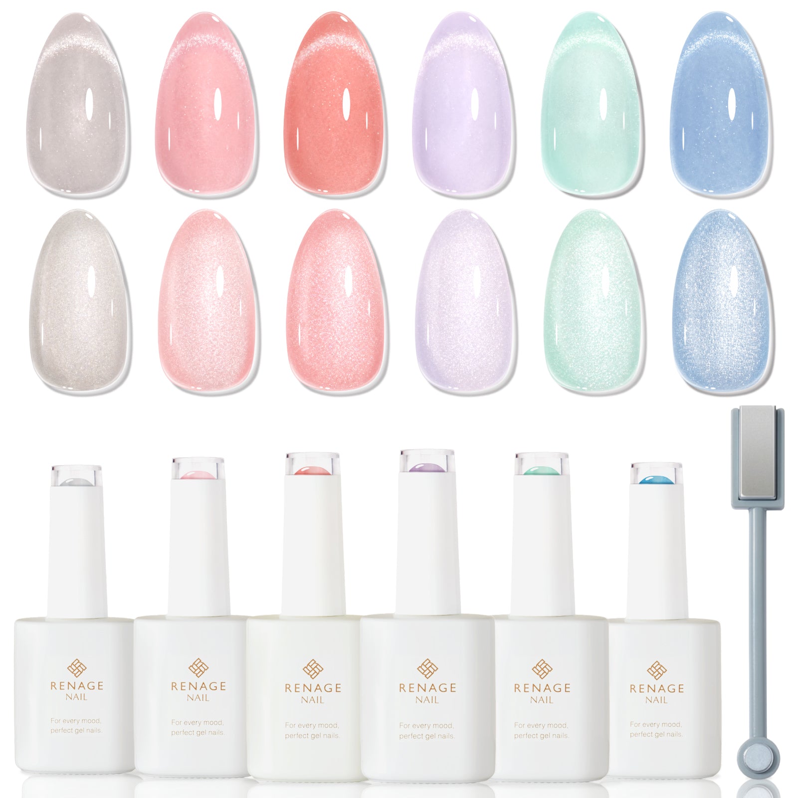 グレー系の色が落ち着いていて、仕事やフォーマルな場面でも合いそうです。マグネットで模様を変えられるので、休日用にキラキラ強めにしたり調整できるのも便利。ボトルが大きめでたっぷり使えるのでコスパ最高です!